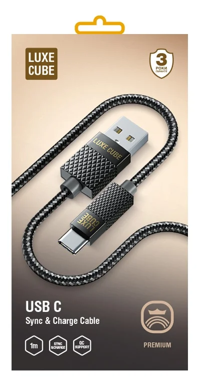 Кабель Luxe Cube Premium USB-USB Type C, 1м, сірий (8889996899667)