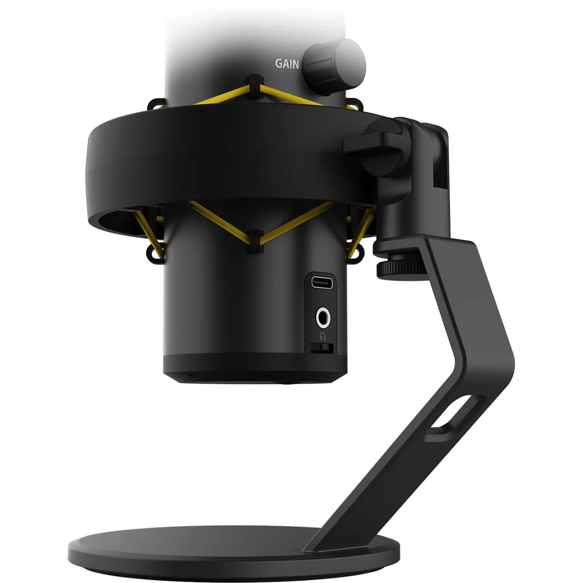 Вбудована панель управління для регулювання чутливості мікрофона, гучності навушників і сенсорна кнопка вимкнення звуку, що підвищує зручність використання під час живих виступів. Міцна металева конструкція та інтегрована амортизаційна підвіска допомагають мінімізувати небажані вібрації та обробку шуму, забезпечуючи чітке захоплення звуку.