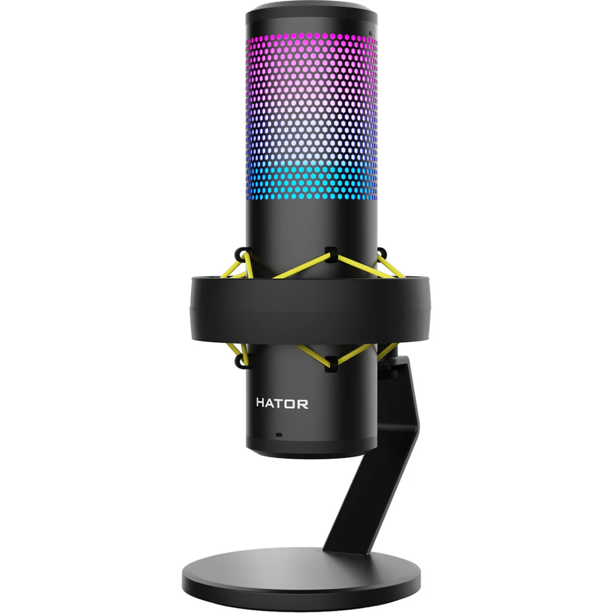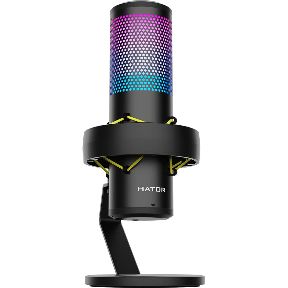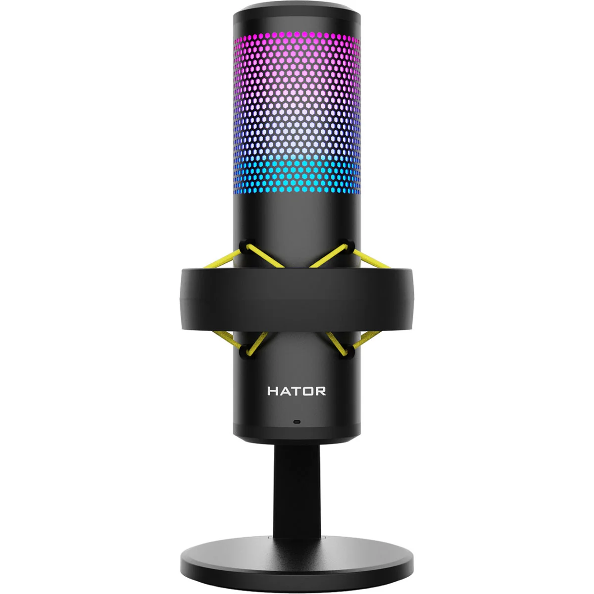 Hator Dreamcast RGB (HTA-550) - це високоякісний конденсаторний USB-мікрофон, який добре підходить для потокового мовлення та запису на професійному рівні. Цей мікрофон пропонує чотири полярні діаграми спрямованості - кардіоїдну, двоспрямовану, всеспрямовану і стерео - що дозволяє йому адаптуватися до різних умов і вимог запису. Включення RGB-підсвічування з налаштуваннями управління та пам'яті не тільки додає естетичної цінності, але й функціональності, оскільки налаштування кольору та режиму зберігаються навіть після вимкнення пристрою.