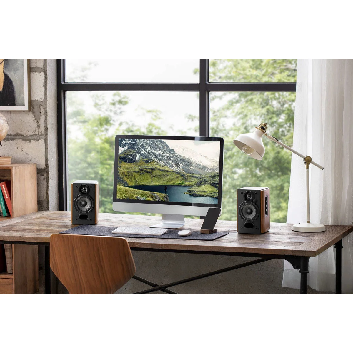 Edifier R1380DB в коричневому кольорі - це набір активних Bluetooth-колонок для книжкових полиць, які пропонують збалансоване поєднання естетичної привабливості та якості звуку. Ці колонки розміщені в класичному дерев'яному корпусі, який допомагає мінімізувати акустичні резонанси та спотворення, забезпечуючи більш чистий і насичений звук.