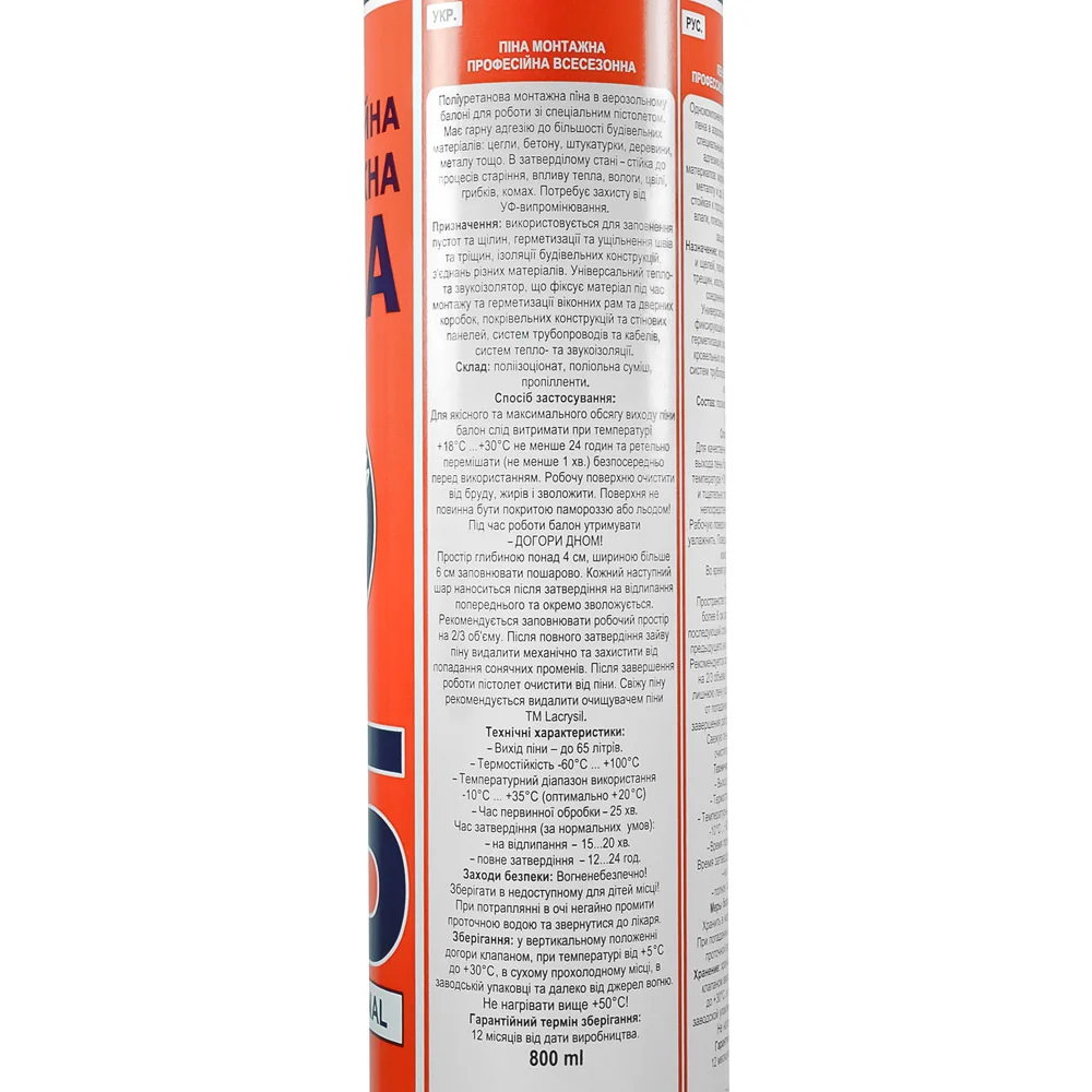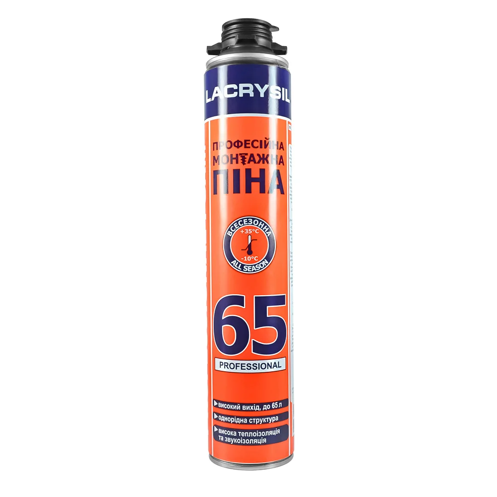 Монтажна піна LACRYSIL Профі — надійний помічник у будівельних та ремонтних роботах, що поєднує високу якість та зручність використання.