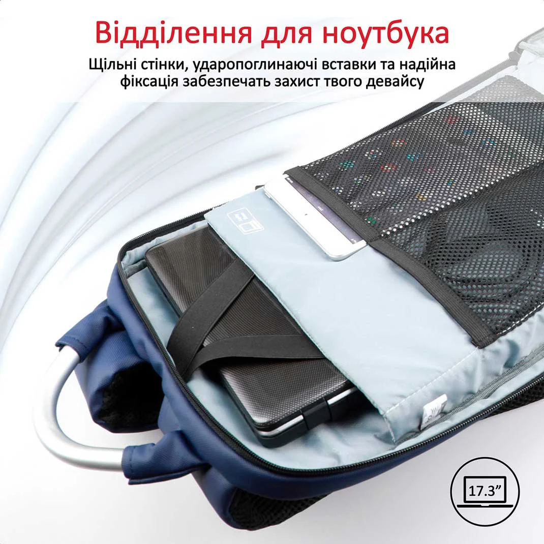 Рюкзак для ноутбука Promate Trekpack BP Blue 17.3 — місткий та зручний рюкзак із відділенням для великого ноутбука та аксесуарів.