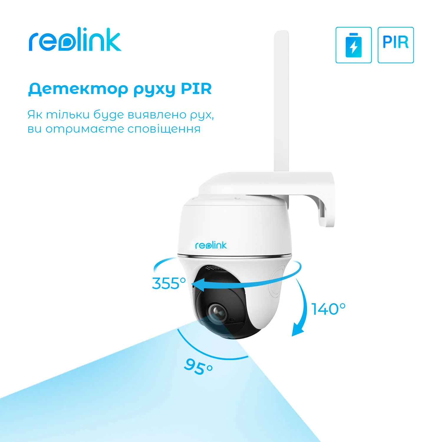 nБеспроводная уличная IP камера Reolink Go PT Plus работает без кабеля с аккумулятором и надежным подключением 4G-LTE. метров, широкий угол обзора 120° и PIR-датчик движения для минимизации ошибочных срабатываний.Встроенный микрофон и динамик позволяет прослушивать и вести разговоры в режиме реального времени.