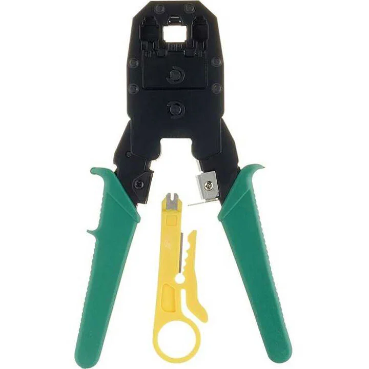 ATCOM SC-310 (8097) - это универсальный обжимной инструмент, предназначенный для заделки разъемов RJ45 и RJ11. Этот инструмент особенно полезен при работе с телефонными и Ethernet-кабелями, поддерживая различные типы кабелей, включая плоские телефонные кабели и сетевые кабели на основе витой пары.